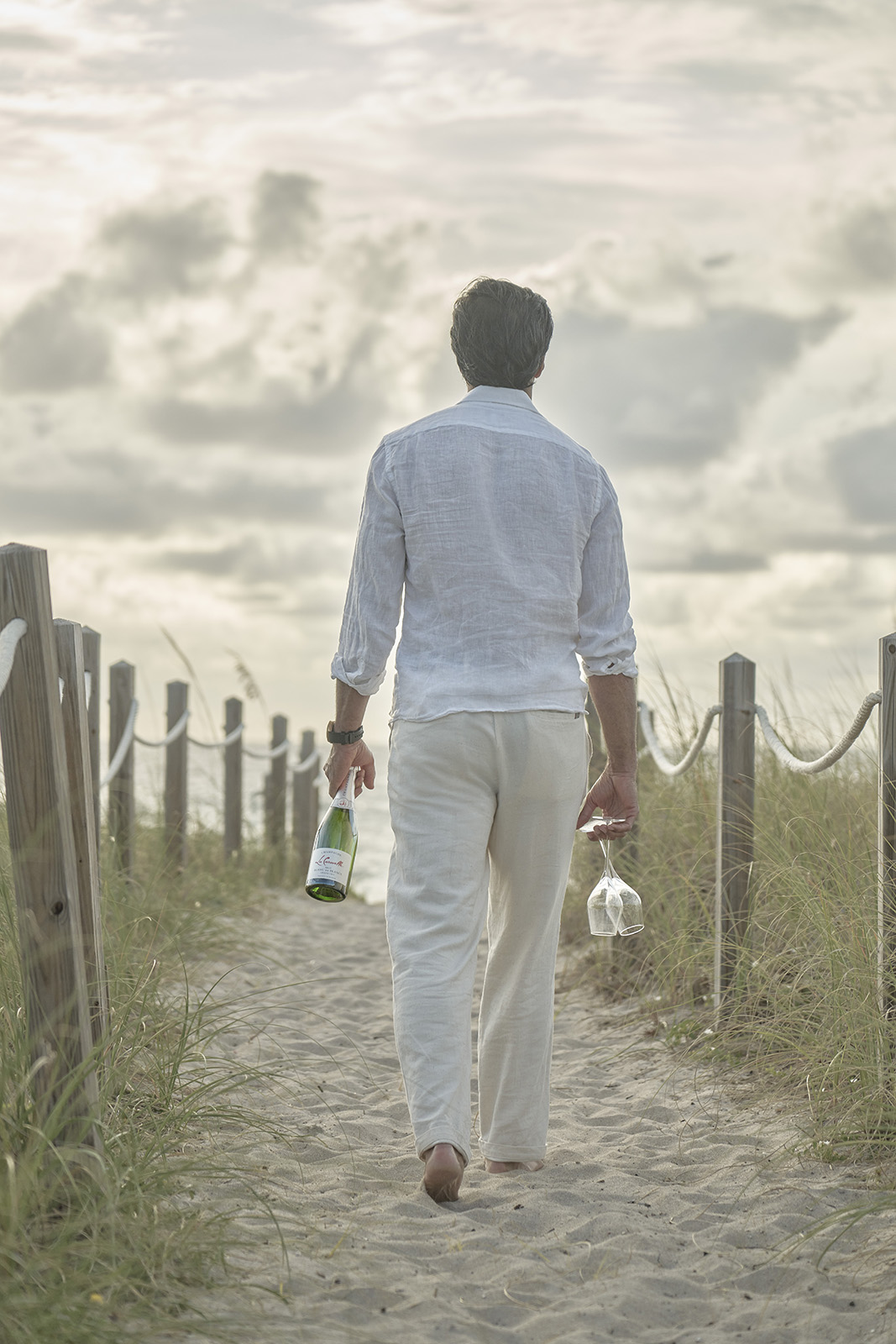 We set out to capture the quiet sophistication of La Caravelle Champagne. It needed to be a feeling more than a scene. The shoot unfolded in soft light and ocean air, where movement was minimal and mood was everything. Through natural tones, linen textures, and the rhythm of the shore, we built a visual and sonic experience that feels calm, effortless, and refined.